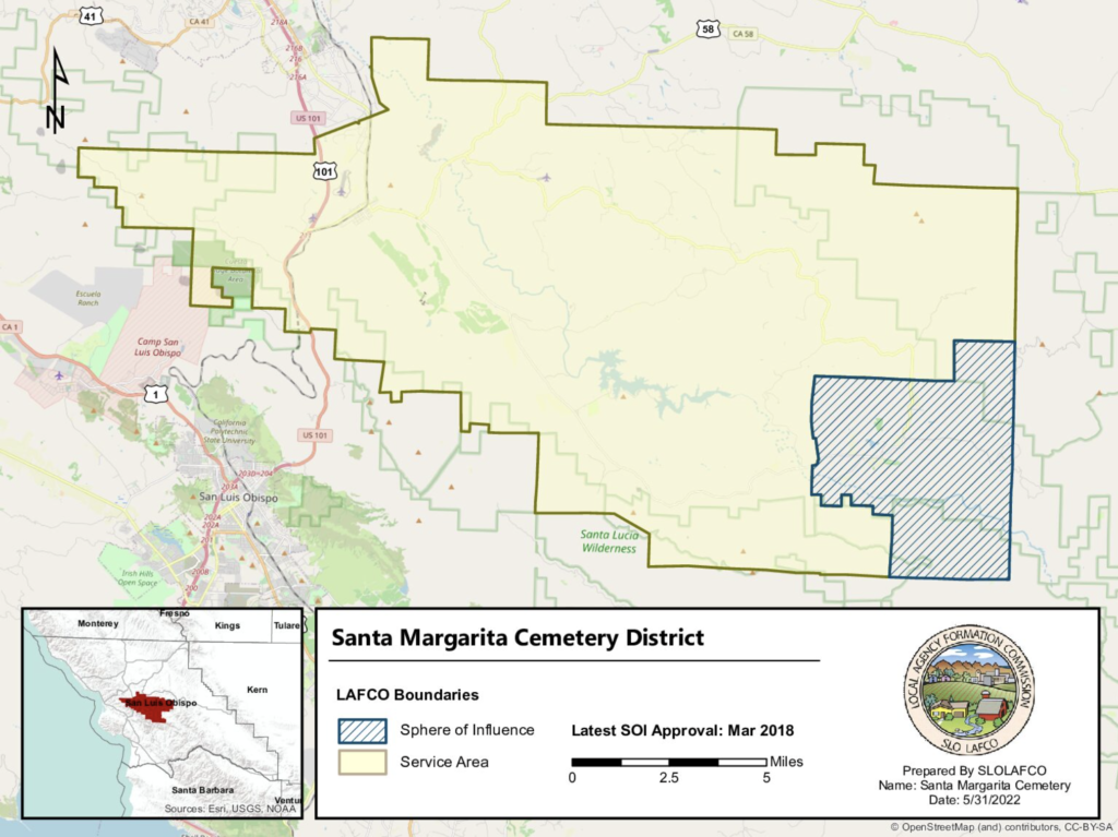 The Santa Margarita Public Cemetery District was formed under a state law adopted by California in 1909. The District is governed by state law; the Health and Safety Code sections 8100-9703.